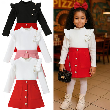 Abbigliamento europeo americano alla moda per ragazze Set in due pezzi autunno inverno con volant a maniche lunghe Set completo completo per ragazza
